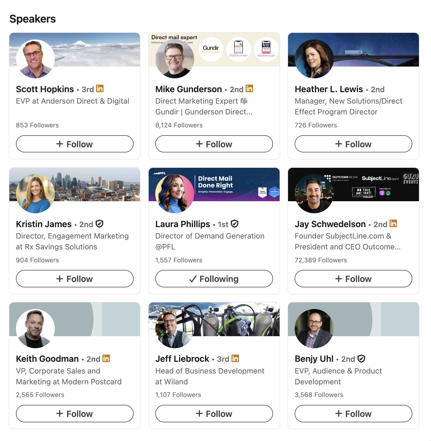 Following the keynote, attendees were treated for the next couple of hours to speedy yet informative sessions hosted by a “who’s who” indirect mail. This is what the lineup looked like and here is a link to the deck containing the slides for all of the presentations.
